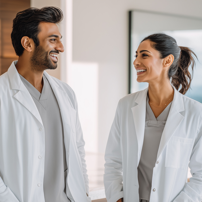 pair-of-indian-american-medical-doctors-laughing Pair of Indian-American Medical Doctors Laughing and Joking