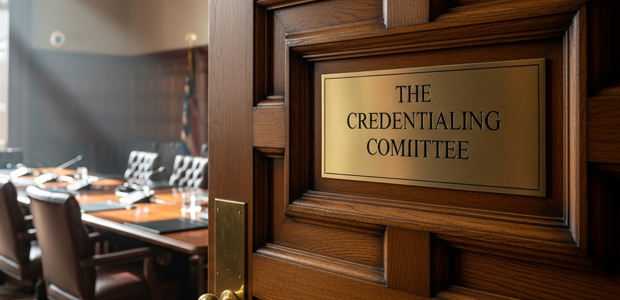 The Credentialing Committee (engraved in golden sign on door)