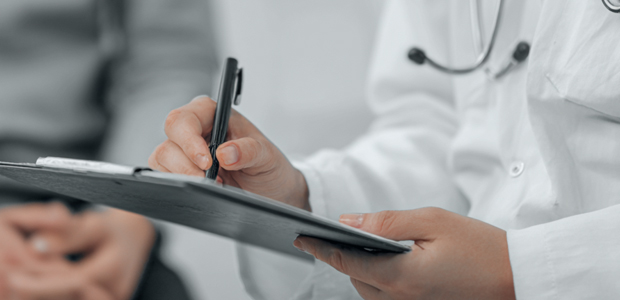 White Male Medical Doctor Taking Notes on a pad.