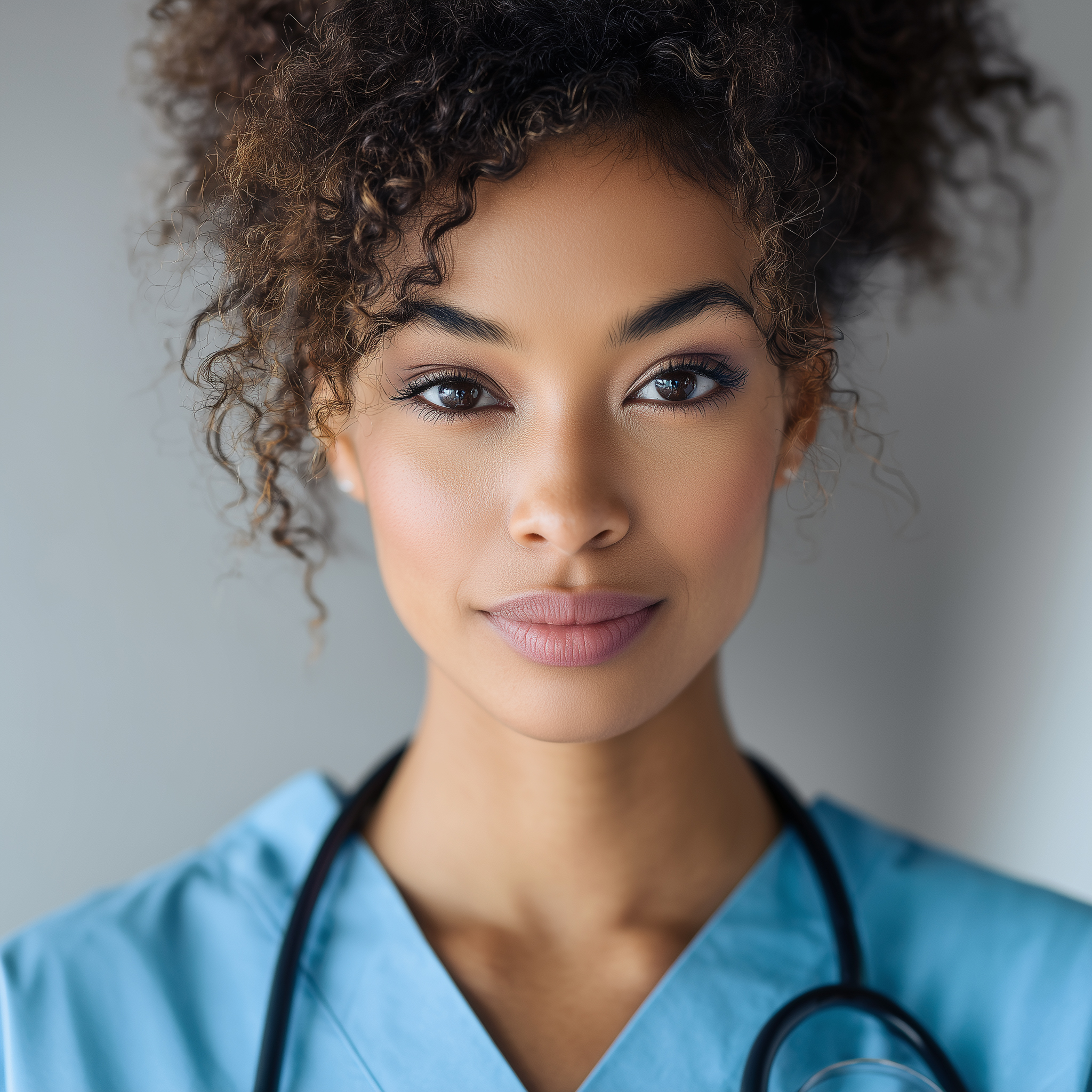 A young, pretty mulatto (half white / half black) physician’s assistant