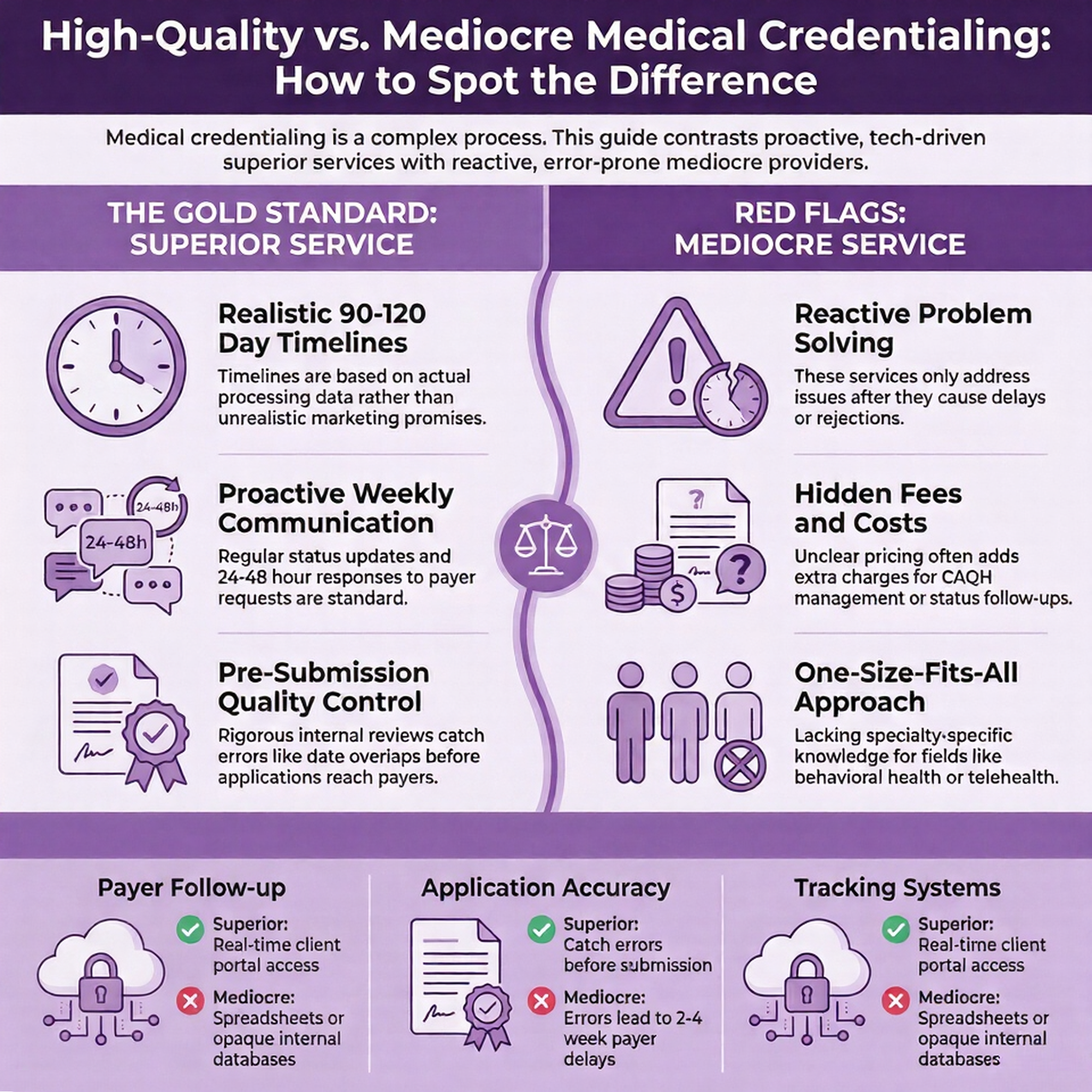 high-quality-vs-mediocre-medical-credentialing-infographic An infographic of High Quality versus Mediocre Medical Credentialing